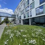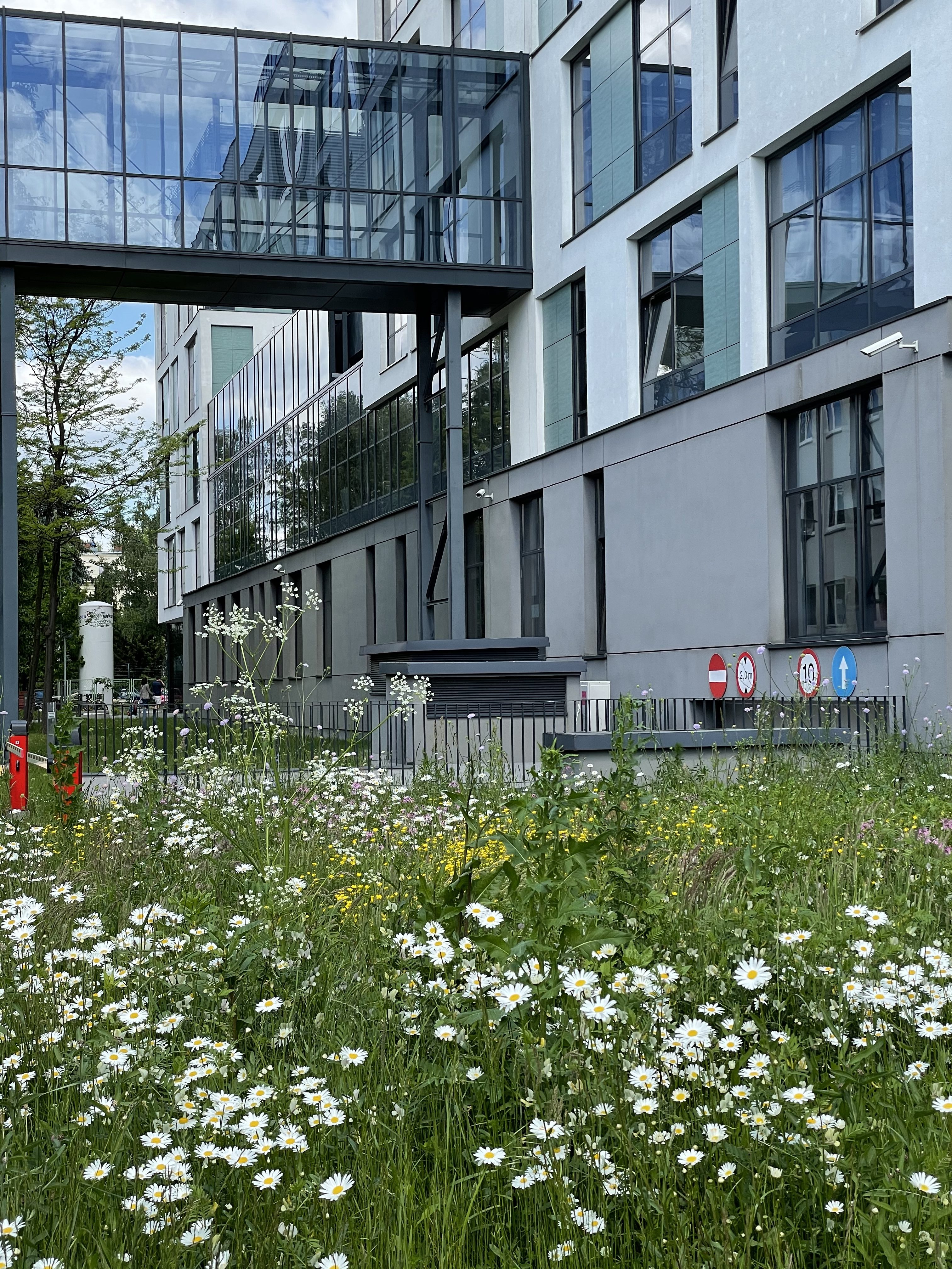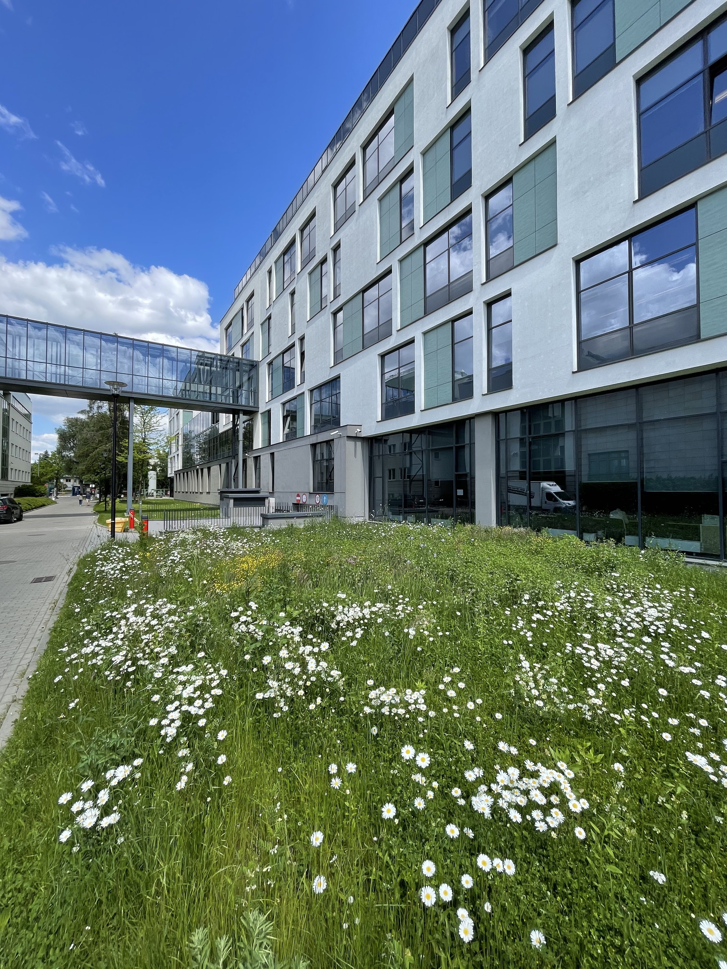 Jak co roku, na trawniku przed wejściem do budynku CNBCh UW możemy podziwiać piękną, kwietną łąkę.
